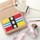 Sticker avec design avec un drapeau du comté historique de Bedfordshire, en Angleterre, Grande-Bretagne; drapeau rouge et or avec bande verticale noire avec arbre pétoncles blancs au centre
