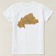 Le devant de ce t-shirt affiche hardiment le drapeau burkinabé avec son étoile jaune caractéristique sur les bandes rouge et verte. Une carte attrayante du Burkina Faso fait écho à cette situation au fond.