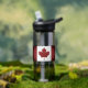 Bouteille d'eau en plastique sur mesure du drapeau canadien. Disponible en 20 ou 25 oz. Pratique pour le sport, la gym, la fitness, le randonnée, le travail, le bureau et plus. Idée cadeau d'anniversaire cool pour lui ou elle. Personnalisez avec votre propre nom ou devis. Impression recto verso. drapeau vintage de la feuille d'érable du Canada.