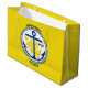 Grand sac cadeau avec la ville d'Anchorage, Alaska; drapeau jaune avec sceau blanc avec une illustration d'un navire et ancre bleu