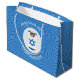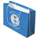Un grand sac cadeau présente notre ange portant le drapeau d'Israël pour la décoration cadeau de vacances ou la décoration Hanoukka. L'ange du drapeau israélien se trouve à l'intérieur d'une fractale circulaire blanche de carrés grossiers. L'arrière - plan est une fractale bleue de carrés grossiers. Ajoutez votre propre texte ou personnalisez avec un jour férié, un nom et une année.