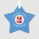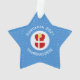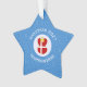 Le décor en forme d'étoile Hanoukka pour la période des fêtes montre un ange portant le drapeau rouge et blanc du Danemark. Conçu pour les familles de religions multiples, l'ange danois Hanoukka se trouve au centre de carrés blancs, entourés de carrés bleus et grossiers. Ajoutez un nom à personnaliser. Customiser en ajoutant l'année. Ou, ajoutez votre propre texte.