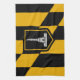 Serviette de cuisine avec drapeau de la ville de Baltimore, Maryland; drapeau noir et jaune avec une illustration du Monument de bataille