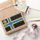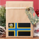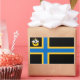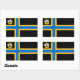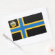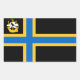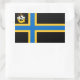 Sticker avec design avec un drapeau du comté historique de Caithness, en Ecosse, Grande-Bretagne; drapeau noir avec croix nordique bleue et jaune et illustration d'un navire avec un corbeau sur sa voile dans le treuil supérieur