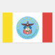 Sticker avec drapeau de la ville de Columbus, Ohio; drapeau avec trois bandes verticales de jaune, blanc et rouge avec sceau bleu de la ville avec aigle chauve dans le centre