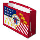 Sac cadeau avec drapeau de la ville de Detroit, Michigan; drapeau rouge, blanc et bleu avec étoiles et rayures, fleur de lys, dragons et sceau de la ville