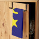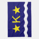 Serviette de cuisine design avec drapeau de Kinshasa, capitale de la République Démocratique du Congo, drapeau bleu à vague blanche, deux étoiles dorées et lettre "K" au centre