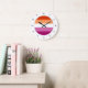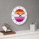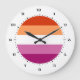 Horloges murales rondes avec drapeau de la fierté lesbienne. Drapeau orange, blanc et rose du mouvement de la fierté lesbienne