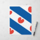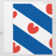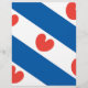 Drapeau de la Frise, une province de la Pays-Bas. Il se compose de bandes diagonales bleues et blanches; dans les bandes blanches sont pompeblêden rouge, feuilles du nénuphar jaune, qui peut rappeler un des coeurs, mais selon les instructions officielles "ne doit pas être en forme de coeur".