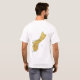 Un titre et un slogan editable accompagne le motif central sur un arrière - plan bleu avec la frontière rouge du drapeau de Guam sur l'avant de ce T-shirt. Le dos montre une carte détaillée de la Guam.