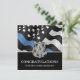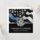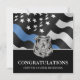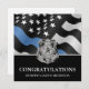 Cette conception comprend un drapeau de la police avec des rayures noires et blanches, ainsi qu'une fine bande bleue. Une excellente façon de féliciter la nouvelle académie de police diplômée. Customisez avec le nom de l'agent d'application de la loi diplômé en argent. Célébrez cette étape importante dans le style!