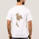 Un titre et un slogan editable accompagne les bandes horizontales rouges, blanches et bleues du drapeau thaïlandais sur l'avant de ce T-shirt. Le dos montre une carte détaillée de la Thaïlande.