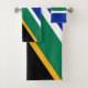 Le drapeau sud-africain est un bicolore horizontal avec une triangle du côté gauche et une bande en "y" au-dessus du drapeau. Les couleurs utilisées dans le drapeau sont bleues, vert, rouge, jaune, blanc, noir. La proportion du drapeau sud-africain est 2 : 3. Le drapeau de l'Afrique du Sud a été adopté en 1994. La première utilisation de la conception actuelle de drapeau était en 1994. Le dernier changement à la conception sud-africaine actuelle de drapeau était en 1994.
