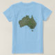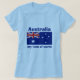 Sur l'avant de cette chemise un titre et un slogan editable accompagne le drapeau australien de ses étoiles blanches sur un drapeau bleu. Le dos montre une carte détaillée de l'Australie.