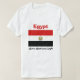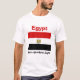 Un titre et un slogan editable accompagne le manteau des bras au-dessus des bandes rouges, blanches et noires du drapeau égyptien sur l'avant de ce T-shirt. Le dos montre une carte détaillée de l'Egypte.