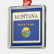 Un dessin graphique du drapeau d'état du Montana sur un ornement de Noël.