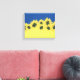 Drapeau de l'Ukraine aux tournesols. Toile étirée Imprimer Un SUNFLOWER est un symbole du Soleil, du travail et de la richesse, de la force et du bien-être. Le tournesol est l'un des symboles de l'Ukraine, parce qu'il symbolise la Patrie : tout comme un tournesol tourne sa tête au Soleil, ainsi une personne dans la pensée, le mot et l'action se tourne vers sa Patrie.