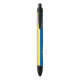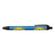 Stylo avec drapeau de la ville Mesa, Arizona; drapeau jaune et bleu avec illustrations stylisées du désert, cactus et soleil levant