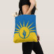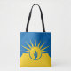 Sac fourre-tout avec drapeau de la ville Mesa, Arizona; drapeau jaune et bleu avec illustrations stylisées du désert, cactus et soleil levant