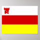 Poster avec drapeau de la ville de Père Noël Barbara, Californie; drapeau avec tricolore vertical de blanc, rouge et jaune, avec illustration d'un fort rouge dans le coin supérieur gauche