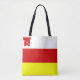 Sac fourre-tout avec drapeau de la ville de Père Noël Barbara, Californie; drapeau avec tricolore vertical de blanc, rouge et jaune, avec illustration d'un fort rouge dans le coin supérieur gauche