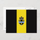Carte postale avec drapeau de la ville de Pittsburgh, Pennsylvanie; drapeau avec trois bandes verticales de noir et jaune avec illustration de château et bouclier au centre