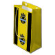 Sac en papier avec drapeau de la ville de Pittsburgh, Pennsylvanie; drapeau avec trois bandes verticales de noir et jaune avec illustration de château et bouclier au centre