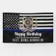 Un drapeau de police amusant pour votre fête d'anniversaire. Embellisté avec un badge d'or classe et une couronne de laurier.