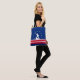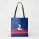 Sac fourre-tout avec drapeau de la ville de Richmond, Virginie; drapeau bleu avec rayures rouges et blanches, avec rayures blanches et silhouette de l'homme travaillant James bateau le long de la rivière James