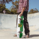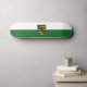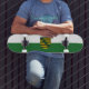 Skateboard avec drapeau de variante de la Saxe; design avec deux bandes horizontales de vert et blanc, et avec armoiries de l’état au centre