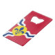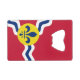 Bouteille Ouverture avec drapeau de la ville de Saint-Louis; drapeau rouge avec vagues blanches et bleues et fleur de lys bleu en cercle jaune