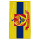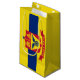 Sac en papier avec drapeau de la ville de St Paul, Minnesota; drapeau avec trois bandes horizontales de bleu et jaune avec emblème rouge au centre