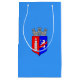 Sacoche en papier avec le drapeau de Tirana, capitale de l'Albanie, drapeau bleu avec armoiries