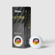Boules de golf avec drapeau de Sarre; conception avec tricolore horizontal de noir, rouge et jaune (or), avec armoiries de l'état au centre