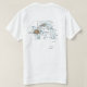 Un titre et un slogan editable accompagne le manteau de l'ensemble de bras dans un drapeau bleu bleu ciel du drapeau de Fijian sur l'avant de ce T-shirt. Le dos montre une carte détaillée des Fidji.