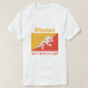 Un titre et un slogan editable accompagne le dragon blanc au-dessus des triangles jaunes et oranges du drapeau bhoutanais sur l'avant de ce T-shirt. Le dos montre une carte détaillée du Bhutan.