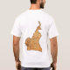 L'avant de ce T-shirt soutient un petit drapeau canerounais avec ses couleurs vertes, rouges et jaunes familières, alors que le dos montre une carte de soulagement du Cameroun. Disponible sur des T-shirts, des sweatshirts, des polo, des long-douilles et plus.