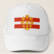 Casquette avec design avec un drapeau du comté historique de Westmorland, en Angleterre, Grande-Bretagne; drapeau rayé blanc et rouge avec pommier héraldique doré dans le centre