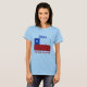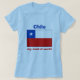 Sur l'avant de cette chemise un titre et un slogan editable accompagne le drapeau chilien de son étoile blanche dans un canton bleu avec les bandes blanches et rouges. Le dos montre une carte détaillée du Chili.