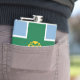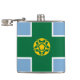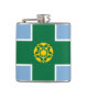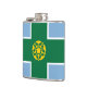 Flacon enveloppé de vinyle avec design avec un drapeau du comté historique de Derbyshire, en Angleterre, Grande-Bretagne; drapeau bleu avec une croix verte et un rose Tudor en or au centre
