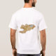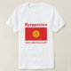 Un titre et un slogan editable accompagne le motif circulaire jaune porté sur un arrière - plan rouge du drapeau kirghiz sur l'avant de ce T-shirt. Le dos montre une carte détaillée du Kirghizistan.