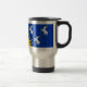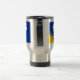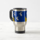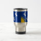 Travel Cup avec design avec drapeau du comté historique de Merioneth, au Pays de Galles, Grande-Bretagne; drapeau bleu azur avec trois chèvres blanches et soleil jaune