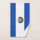 Le drapeau salvadorien d'EL est un triband horizontal avec un emblème au milieu. Les couleurs utilisées dans le drapeau sont bleu, blanc. La proportion du drapeau salvadorien d'EL est 189:335. Le drapeau du Salvador a été adopté en 1912. La première utilisation de la conception actuelle de drapeau était en 1912.