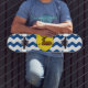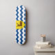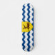 Skateboard avec design avec un drapeau du comté historique de Hertfordshire, en Angleterre, Grande-Bretagne; drapeau avec une illustration d'un cerf dans un bouclier jaune sur blanc et bleu ondulé arrière - plan