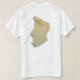 L'avant de ce T-shirt soutient un petit drapeau tchadien avec ses couleurs bleues, jaunes et rouges familières, alors que le dos montre une carte de soulagement du Tchad. Disponible sur des T-shirts, des sweatshirts, des polo, des long-douilles et plus.
