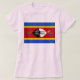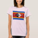 L'avant de ce t-shirt affiche audacieusement le drapeau swazi avec son bouclier distinctif et son motif de lances sur le rouge avec des bandes bleues et jaunes au-dessus et au-dessous. Ceci est jumelé à l'arrière par une carte attrayante d'Eswatini.