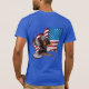 T-shirt Mens Bella Canvas en bleu avec un drapeau patriotique américain et un drapeau américain. Graphique des deux côtés. Disponible en plusieurs couleurs. Customisez cette chemise ou achetez comme prévu.