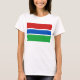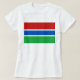 L'avant de ce t-shirt affiche audacieusement le drapeau gambien avec ses bandes horizontales rouge, blanc fimbriqué bleu et vert distinctif. Ceci est jumelé à l'arrière par une carte attrayante de Gambie.