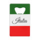 Drapeau italien en acier inoxydable ouvre-bouteille style carte de crédit. S'intègre facilement dans un porte-monnaie ou un porte-monnaie. Fait un cadeau amusant pour un mec ou une fille.