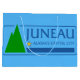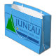 Grand sac cadeau avec drapeau de la ville de Juneau, Alaska; drapeau bleu avec illustration stylisée des arbres